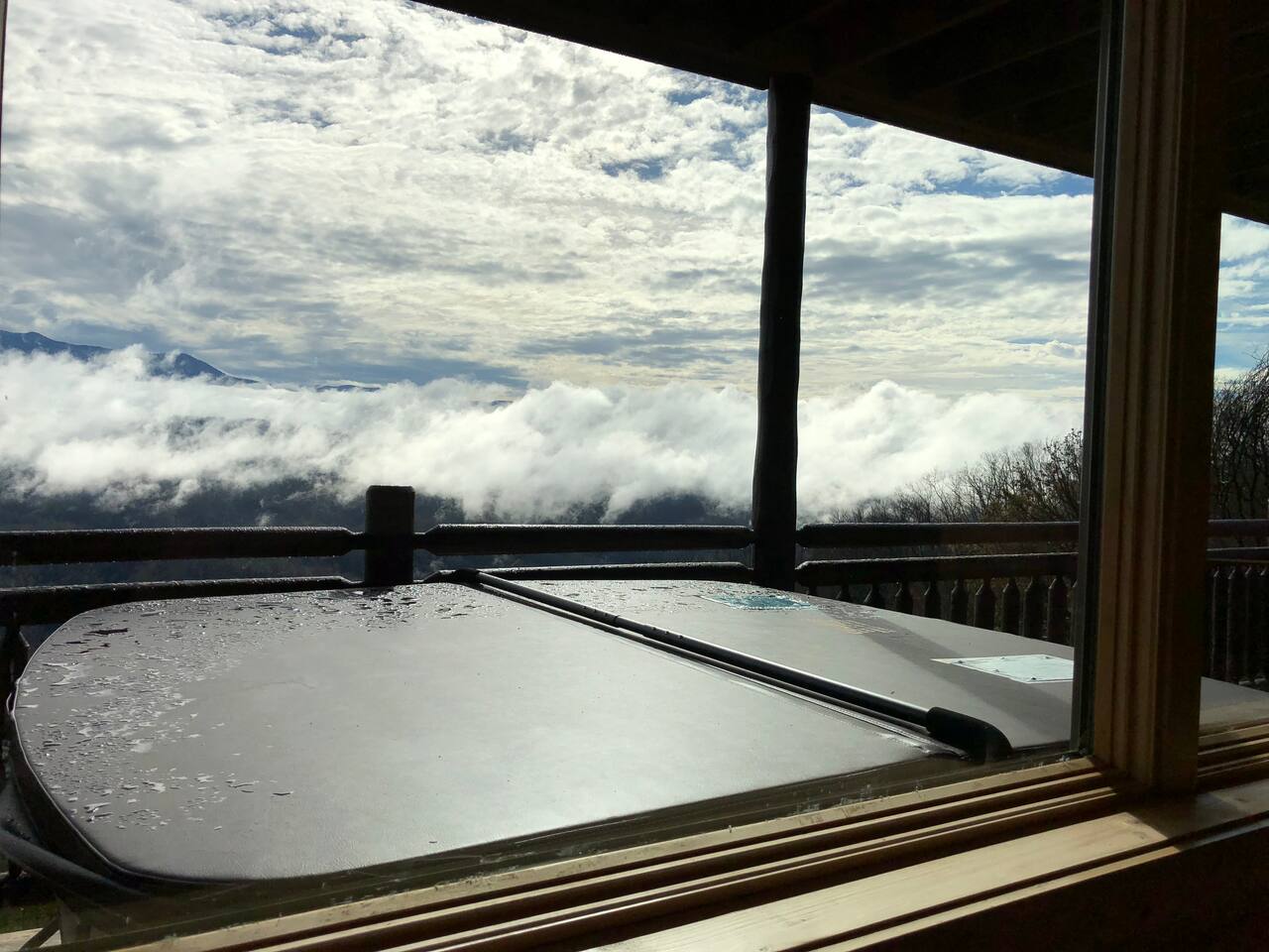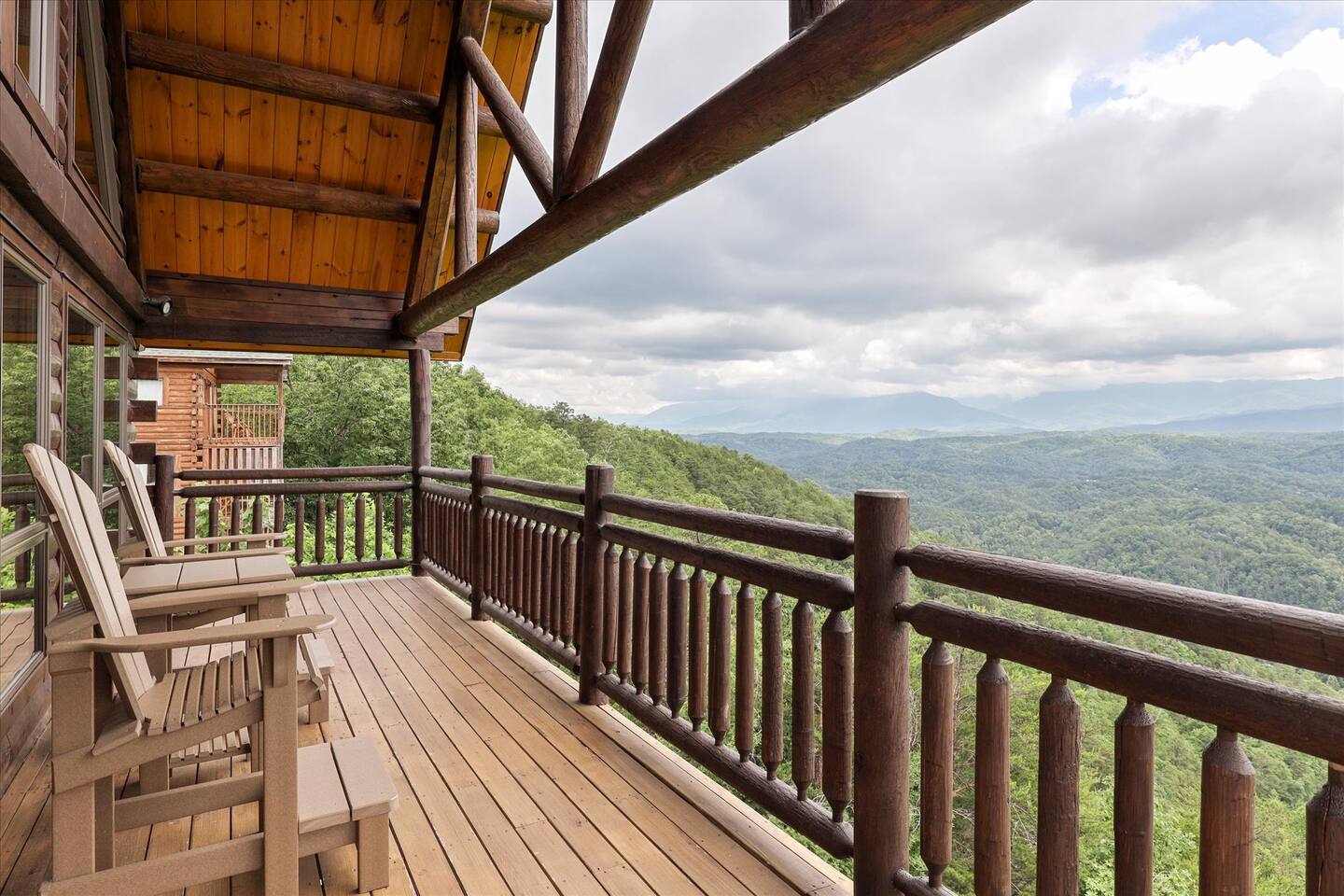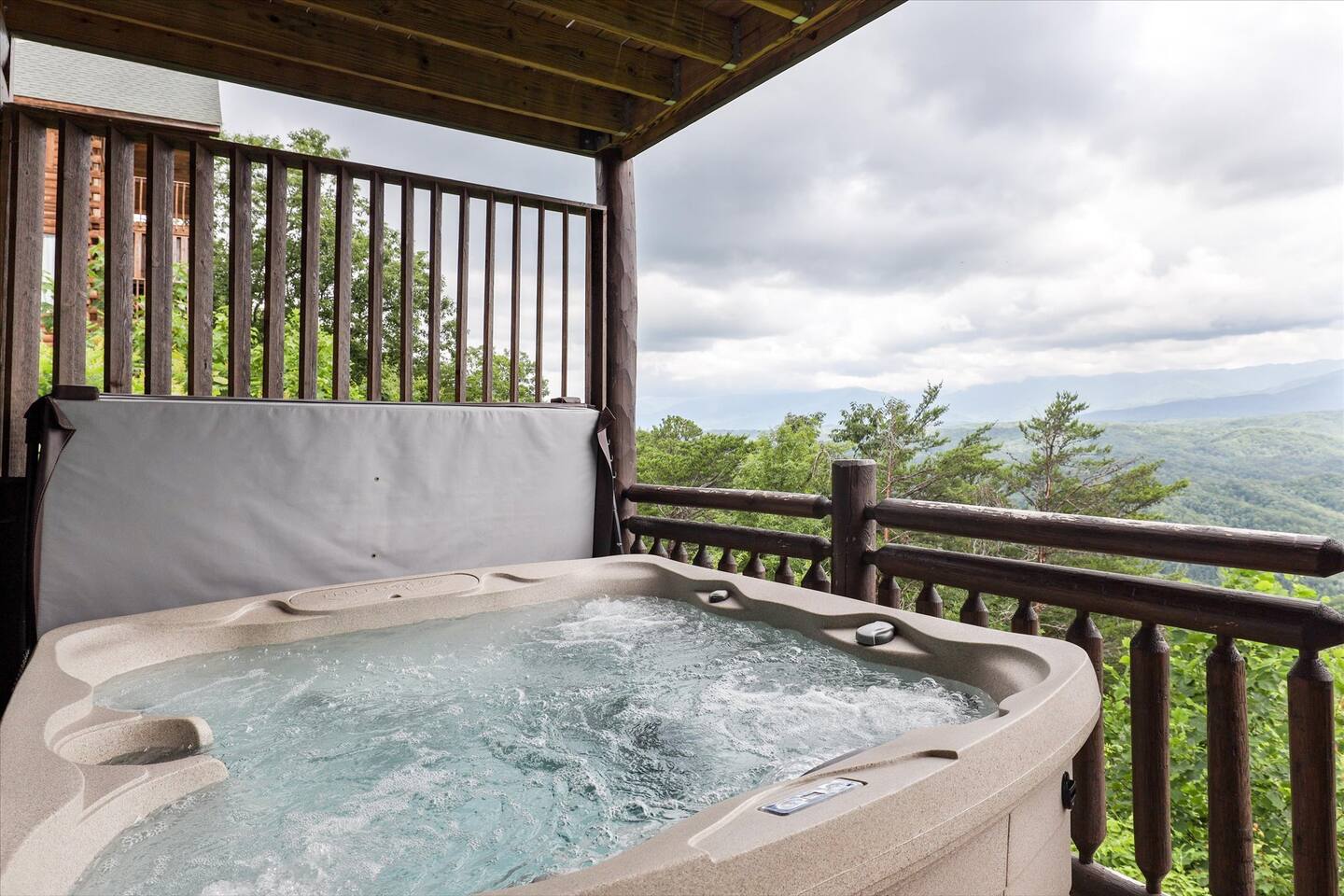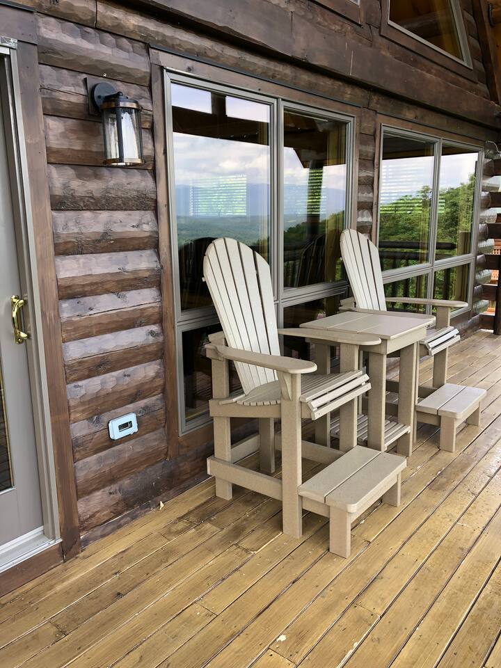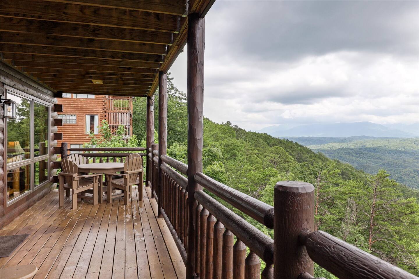 A View From The Top is a roomy Custom Cedar log cabin that sits on top of a mountain ridge 2000 ft above sea level and centrally located. This cabin was rebuilt brand new after the devastating fire that affected the area last year. Our luxury cabin has 2 master king bedrooms one on the main level and the other on the top level. There are 2 more bedrooms on the ground level that shares a full bathroom. The cabin is tastefully decorated and has custom blinds throughout except for the deck windows. Custom details and floor to ceiling windows throughout the cabin maximizes the breathtaking view from every room. There is a gas fireplace in the living space. The unobstructed panoramic view can be seen from all 3 floors and all 3 decks. Mountain view pictures were taken from our decks. We have an outdoor grill, Firepit , Arcade , jetted tub, hot tub, air hockey, pool table, outdoor corn hole bean bag toss, HDTV's in all bedrms, 55' Smart HDTV/DVR/Blu-ray DVD in living space with Netflix, free WiFi. DVD player in loft. Mountain road to cabin is a good two lane paved road. There is a large flat parking area in front of the cabin that can accommodate 4-5 vehicles depending on size. We furnish all linens, hand soap at every sink, shower gel, dish detergent and a starter supply of paper towels, toilet paper, trash bags, dishwasher and washing machine detergents. * One of the best mountain views in the area *Custom built True Luxury Log Cabin * Close to Parkway and shopping strip- less than 3 miles * 4 bedrooms, spacious 2700 sq ft cabin * large level parking area in front of cabin *High Speed Cable Internet with free Netflix Note: Only the main level of the cabin is Wheelchair friendly..