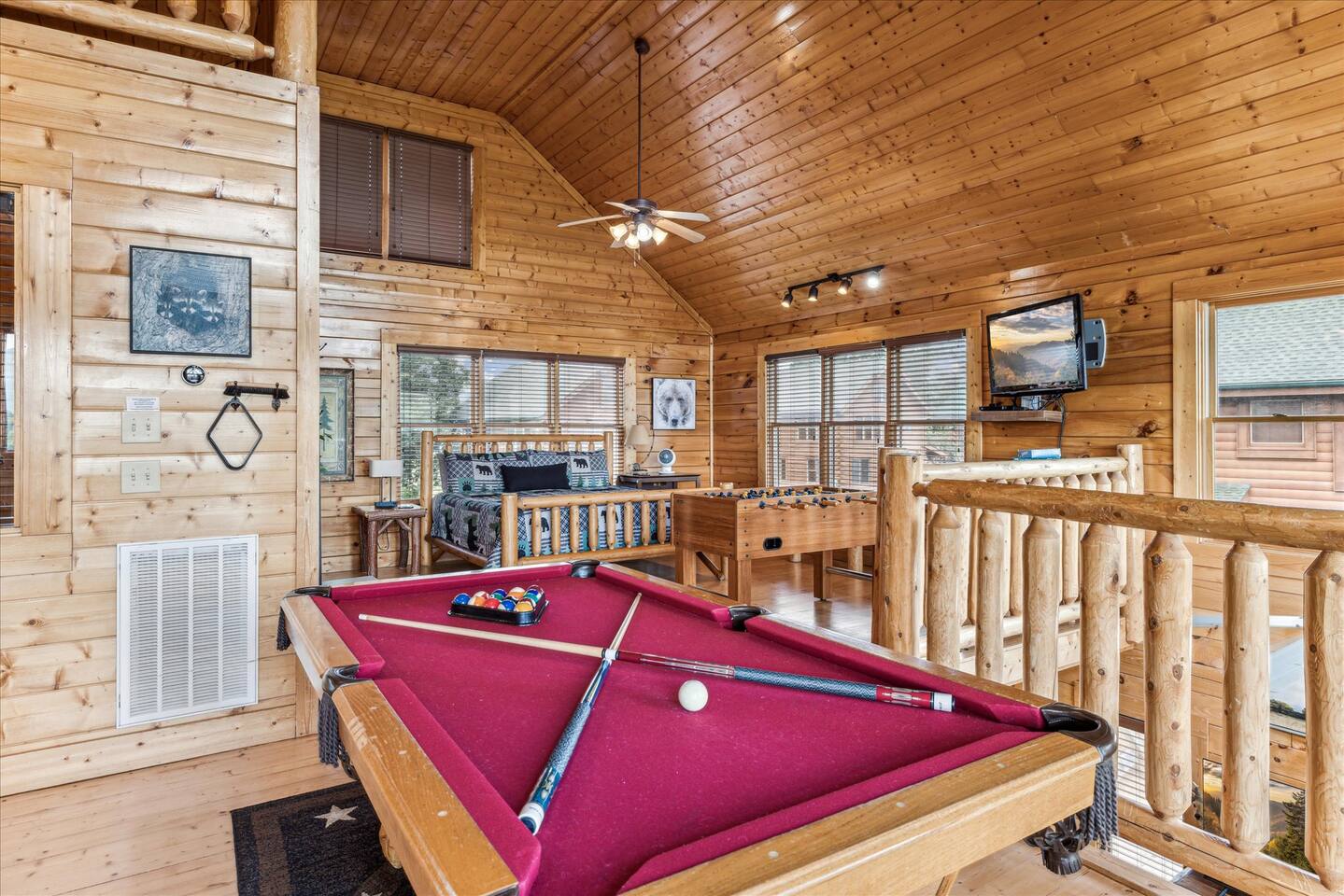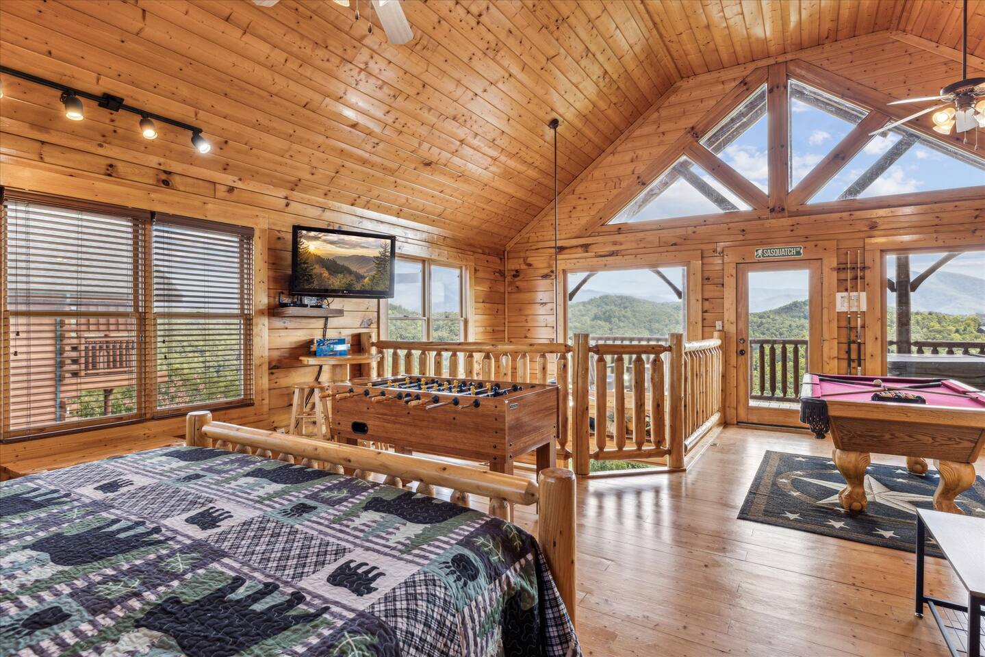 This cabin sits in the lower end of the road in Preserve resort with direct unobstructed view of the smoky mountains . Ie you won’t be staring at any other cabin roof lines This is a pet-friendly cabin 🐾, but please note there isn’t a grassy area immediately outside. You’ll find a common grassy area about 50 feet away that’s perfect for your pet to go potty. We kindly ask that you respect the posted signs and clean up after your dog. Thank you!