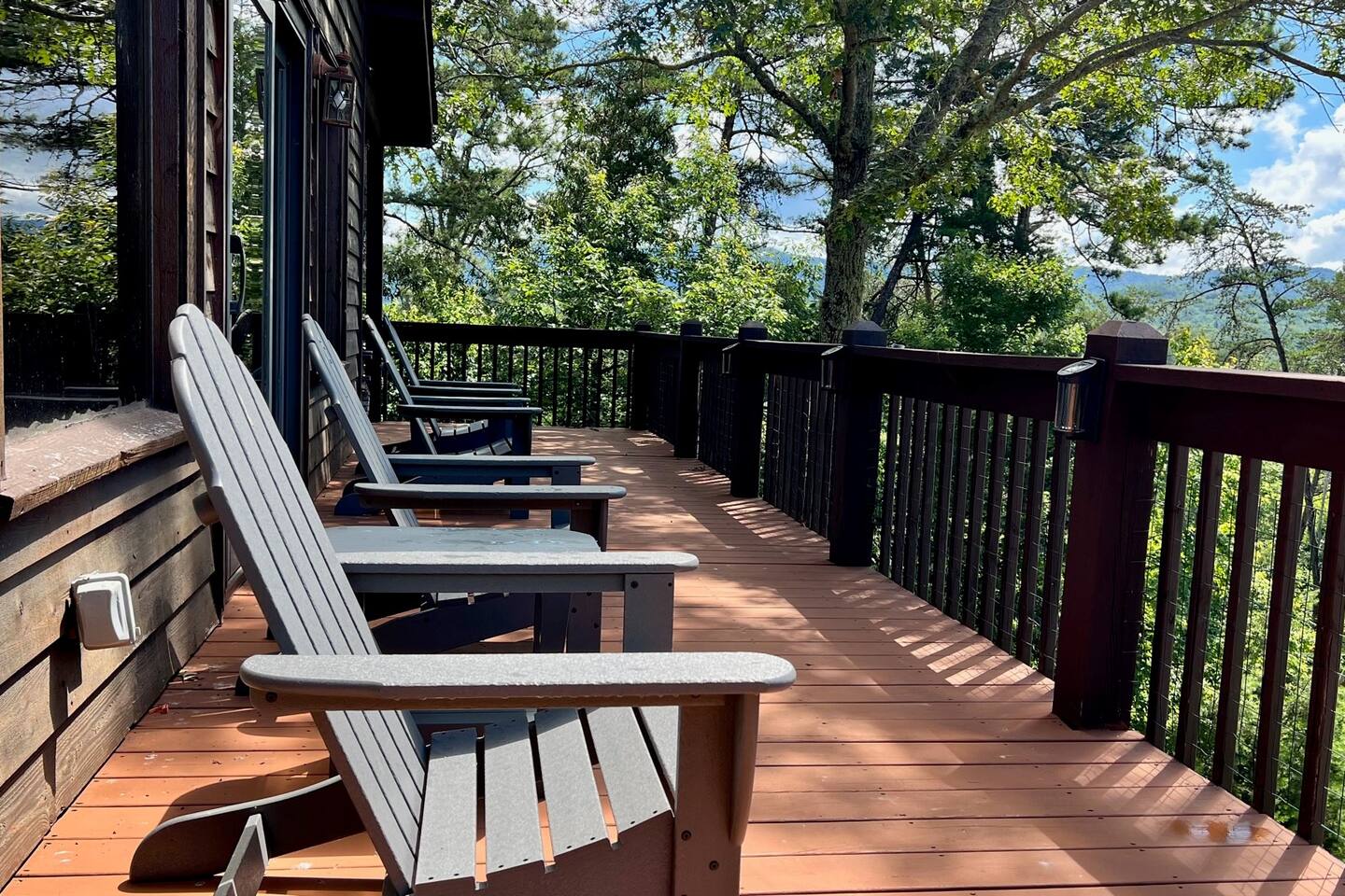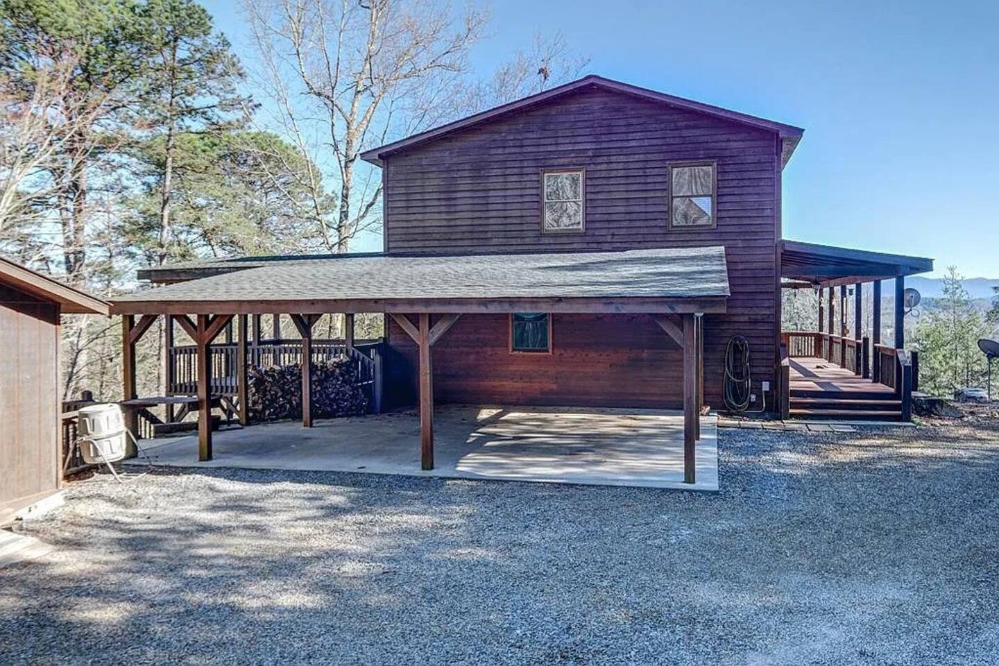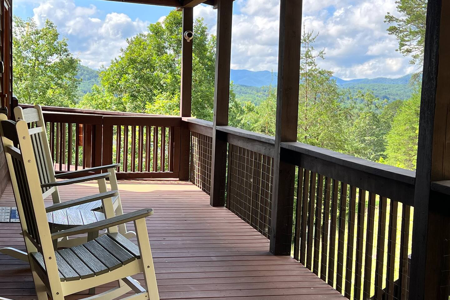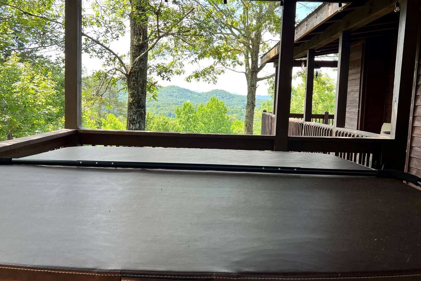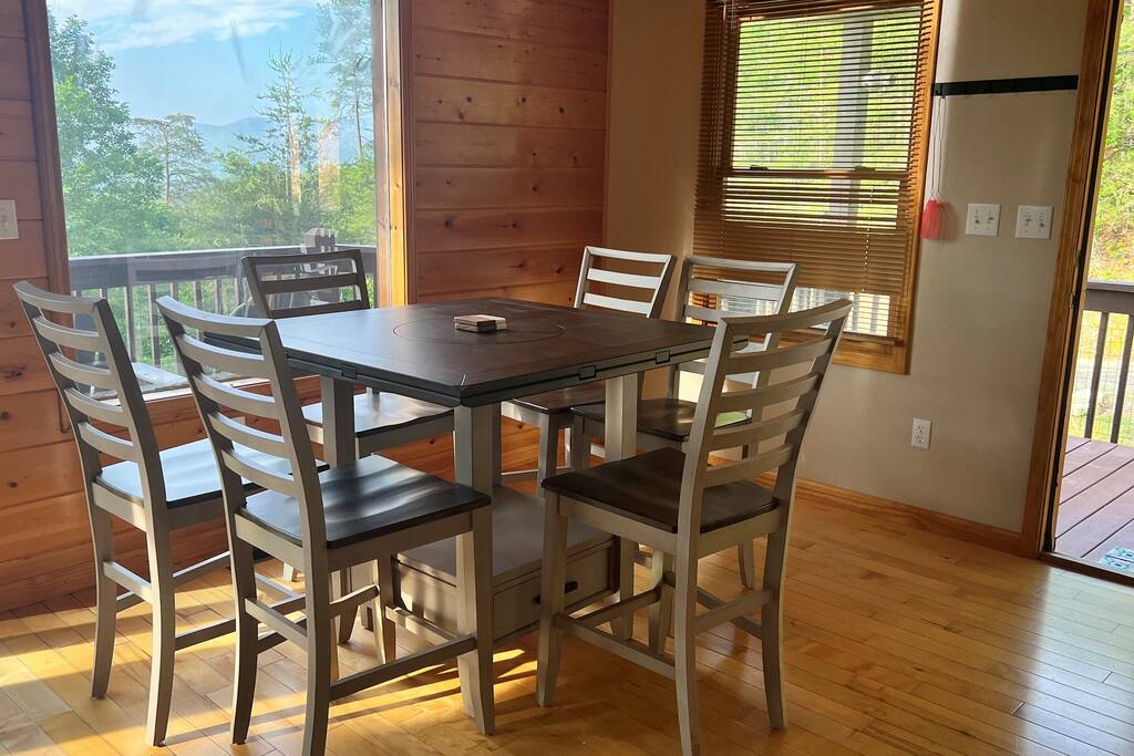 This three-level cabin is designed to cater to your every need. Each level features a cozy bedroom and a well-appointed bathroom, ensuring privacy and comfort for everyone in your group. Whether you're seeking solitude or spending quality time with loved ones, this cabin provides the ideal setting. It is also conveniently close to town, ensuring easy access to local attractions, dining options, and shopping experiences. The main level of the cabin is a true haven of comfort and luxury. The gourmet kitchen, open to the living area, allows you to prepare culinary delights while staying connected with your guests. In winter months snuggle up in front of the wood-burning fireplace, creating a cozy ambiance that is perfect for quiet evenings and cherished memories. Step out onto the large covered front porch with rocking chairs and Adirondack chairs to take in the sounds of the birds singing and the breeze rustling through the trees The lower level of the cabin is a paradise for entertainment enthusiasts. Engage in friendly competition around the pool table, sip your favorite beverages at the mini bar area, and catch up on sports events on the large TV screen. It's an oasis for relaxation and enjoyment. Walk out from this level to a deck to enjoy the view or enjoy a cocktail sitting on the bar table. The top Loft level features a nice lounge area with a dedicated workspace complete with a computer table and chair. This level also has a queen bed and a full bathroom. You will enjoy waking up to the awesome view from your bed. High speed WiFi is available throughout the cabin. Outside Space and Entertainment: The covere.d porch and wrap-around deck beckon you to unwind and take in the panoramic vistas that stretch as far as the eye can see. Immerse yourself in the warmth and relaxation of the bubbling hot tub, providing the perfect sanctuary to soak your cares away. As evening descends, gather around the firepit on the deck and let the crackling flames set the mood for memorable conversations and s'mores. For those who enjoy outdoor grilling, our cabin boasts a convenient propane grill area where you can prepare mouthwatering meals while taking in the fresh mountain air. Engage in friendly dart games, adding an element of competition and laughter to your days spent in this serene environment. As a pet-friendly establishment, we understand that your furry companions are part of the family. Bring them along to explore the wonders of Murphy, NC, and create unforgettable memories together. Murphy offers many attractions right outside your door including world class hiking in the Nantahala National Forest with trails ranging from easy strolls to strenuous climbs. Fishing in nearby Lake Fontana and nearby lakes and streams for bass, trout and panfish. Multiple zip lining and aerial adventure parks provide a fun adrenaline rush for the whole family. And for those looking for souvenirs, local art galleries and shops sell unique handmade crafts, pottery and artwork by regional artisans. Our location is fantastic. From the wildlife to the views, you will feel that you are miles from no-where, when in effect you’ll be only four miles from downtown, 6 miles from Wal-Mart, and just 4miles from John Campbell Folk School. We're 8 miles from the new Harrah's Cherokee Casino, but again, you'll feel like your out in the woods on our very private and exclusive mountain. Don't miss the opportunity to experience the ultimate mountain retreat. Book your stay at our log cabin in Murphy, NC, and let the magic of the surroundings envelop you in blissful tranquility. Your unforgettable vacation awaits!