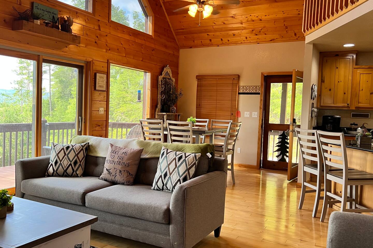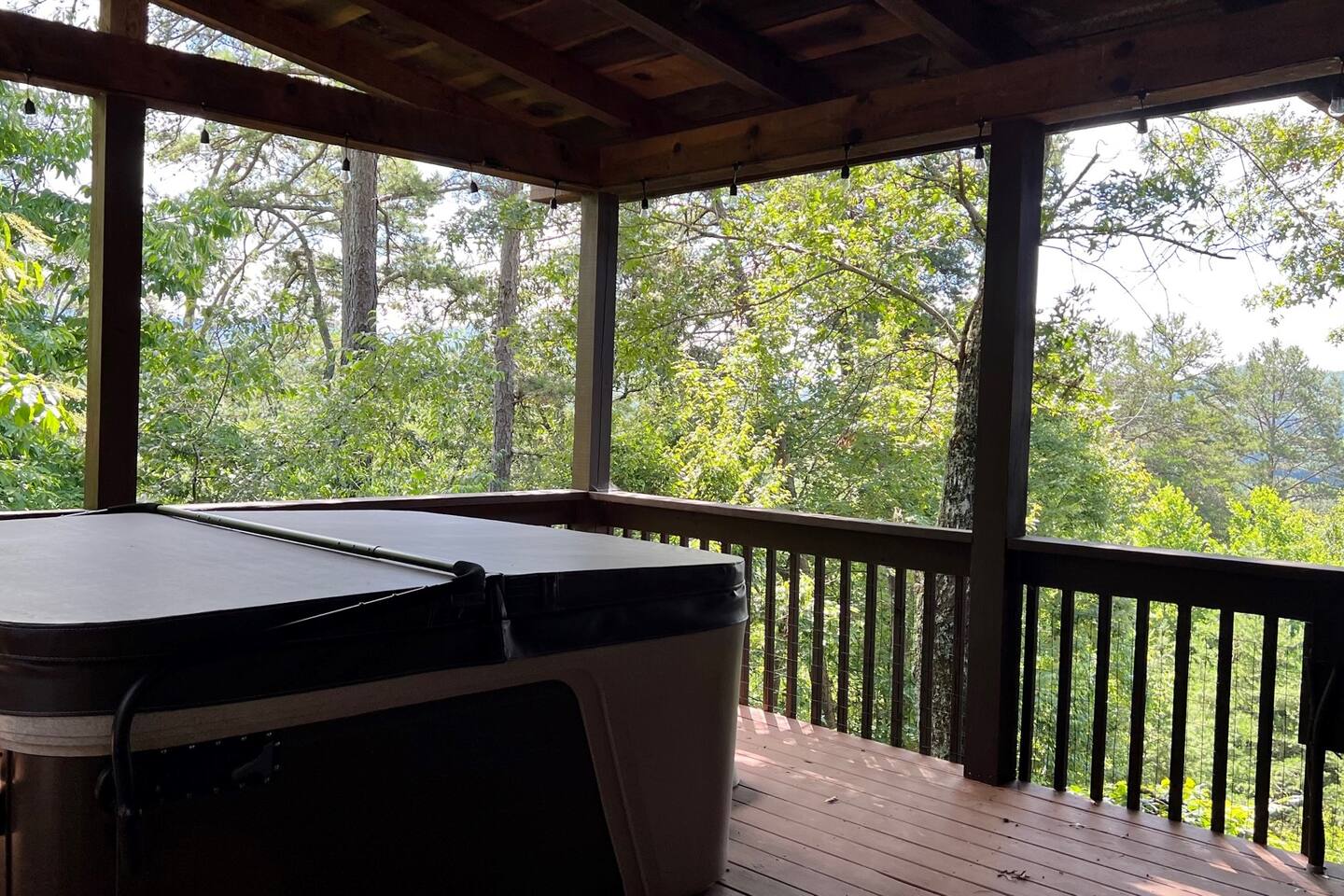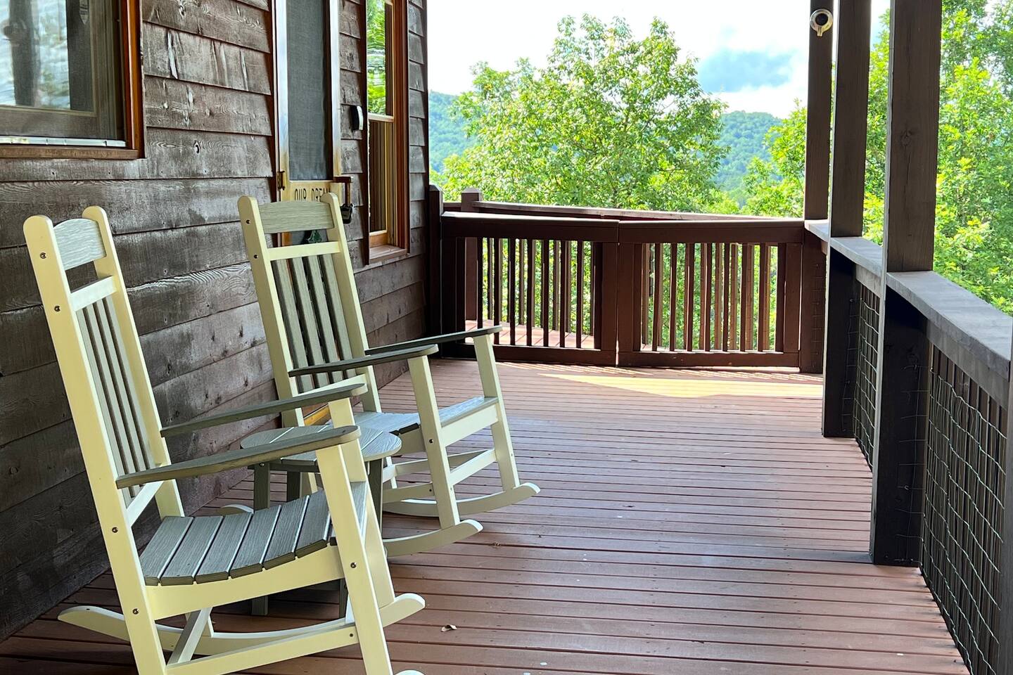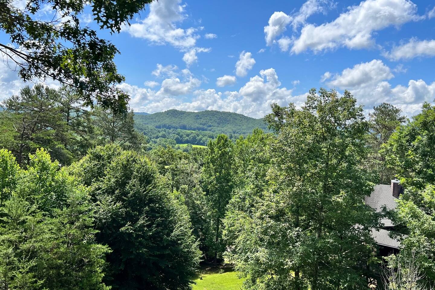 This three-level cabin is designed to cater to your every need. Each level features a cozy bedroom and a well-appointed bathroom, ensuring privacy and comfort for everyone in your group. Whether you're seeking solitude or spending quality time with loved ones, this cabin provides the ideal setting. It is also conveniently close to town, ensuring easy access to local attractions, dining options, and shopping experiences. The main level of the cabin is a true haven of comfort and luxury. The gourmet kitchen, open to the living area, allows you to prepare culinary delights while staying connected with your guests. In winter months snuggle up in front of the wood-burning fireplace, creating a cozy ambiance that is perfect for quiet evenings and cherished memories. Step out onto the large covered front porch with rocking chairs and Adirondack chairs to take in the sounds of the birds singing and the breeze rustling through the trees The lower level of the cabin is a paradise for entertainment enthusiasts. Engage in friendly competition around the pool table, sip your favorite beverages at the mini bar area, and catch up on sports events on the large TV screen. It's an oasis for relaxation and enjoyment. Walk out from this level to a deck to enjoy the view or enjoy a cocktail sitting on the bar table. The top Loft level features a nice lounge area with a dedicated workspace complete with a computer table and chair. This level also has a queen bed and a full bathroom. You will enjoy waking up to the awesome view from your bed. High speed WiFi is available throughout the cabin. Outside Space and Entertainment: The covere.d porch and wrap-around deck beckon you to unwind and take in the panoramic vistas that stretch as far as the eye can see. Immerse yourself in the warmth and relaxation of the bubbling hot tub, providing the perfect sanctuary to soak your cares away. As evening descends, gather around the firepit on the deck and let the crackling flames set the mood for memorable conversations and s'mores. For those who enjoy outdoor grilling, our cabin boasts a convenient propane grill area where you can prepare mouthwatering meals while taking in the fresh mountain air. Engage in friendly dart games, adding an element of competition and laughter to your days spent in this serene environment. As a pet-friendly establishment, we understand that your furry companions are part of the family. Bring them along to explore the wonders of Murphy, NC, and create unforgettable memories together. Murphy offers many attractions right outside your door including world class hiking in the Nantahala National Forest with trails ranging from easy strolls to strenuous climbs. Fishing in nearby Lake Fontana and nearby lakes and streams for bass, trout and panfish. Multiple zip lining and aerial adventure parks provide a fun adrenaline rush for the whole family. And for those looking for souvenirs, local art galleries and shops sell unique handmade crafts, pottery and artwork by regional artisans. Our location is fantastic. From the wildlife to the views, you will feel that you are miles from no-where, when in effect you’ll be only four miles from downtown, 6 miles from Wal-Mart, and just 4miles from John Campbell Folk School. We're 8 miles from the new Harrah's Cherokee Casino, but again, you'll feel like your out in the woods on our very private and exclusive mountain. Don't miss the opportunity to experience the ultimate mountain retreat. Book your stay at our log cabin in Murphy, NC, and let the magic of the surroundings envelop you in blissful tranquility. Your unforgettable vacation awaits!