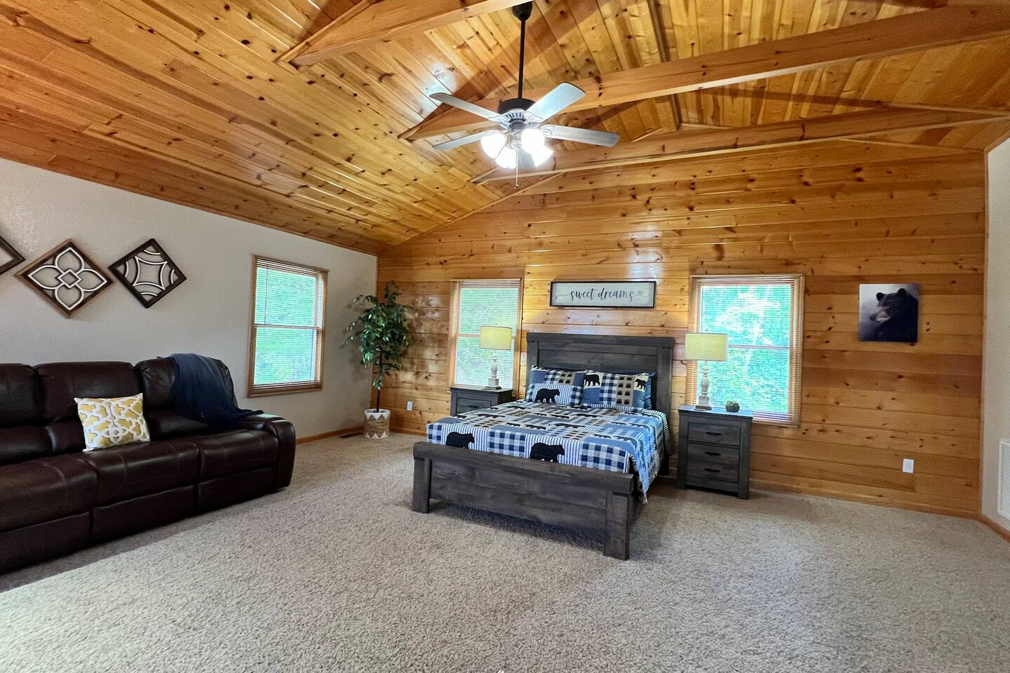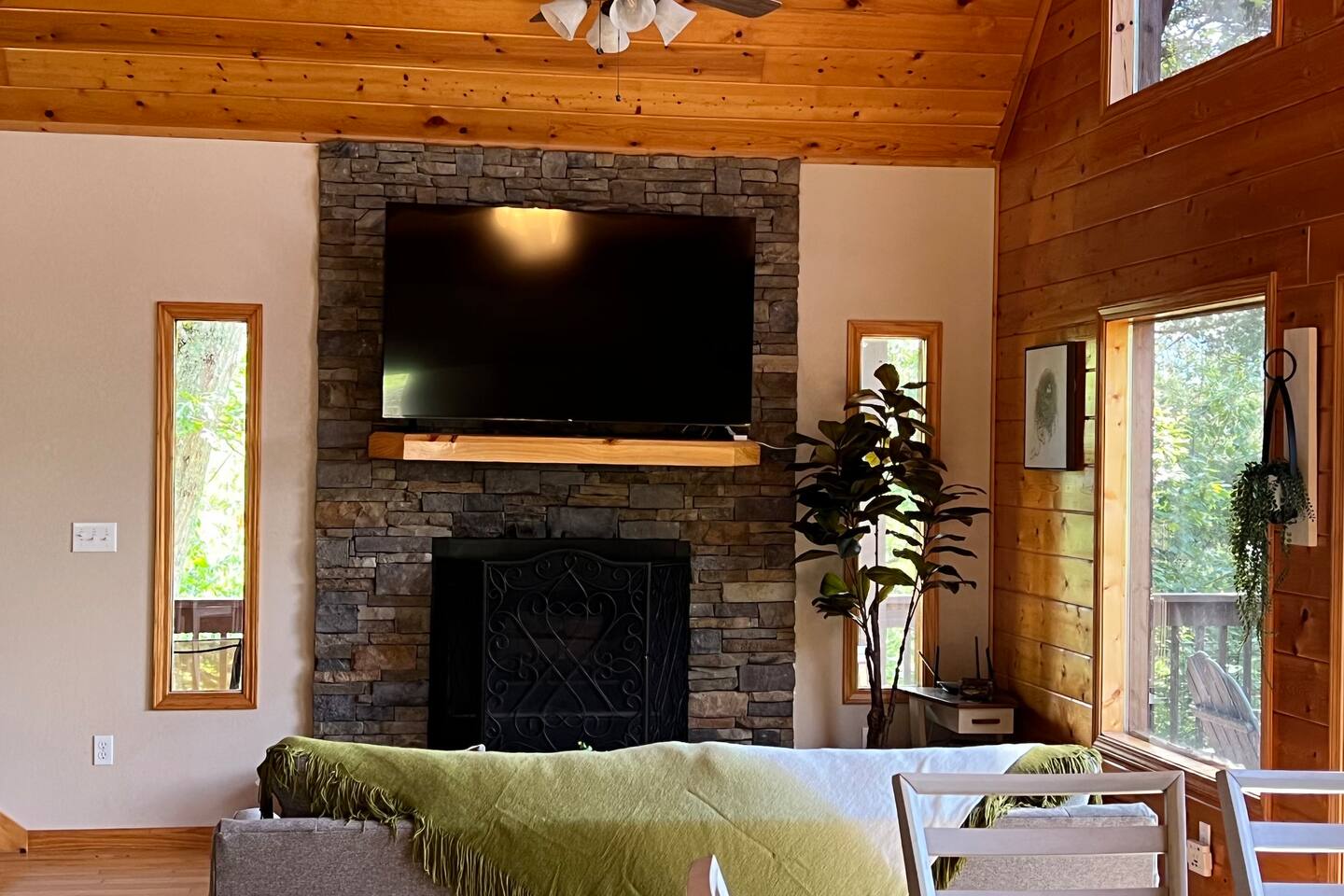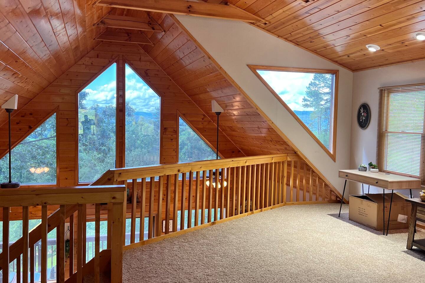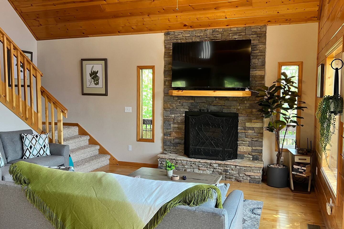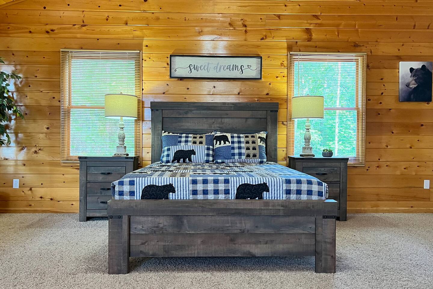 This three-level cabin is designed to cater to your every need. Each level features a cozy bedroom and a well-appointed bathroom, ensuring privacy and comfort for everyone in your group. Whether you're seeking solitude or spending quality time with loved ones, this cabin provides the ideal setting. It is also conveniently close to town, ensuring easy access to local attractions, dining options, and shopping experiences. The main level of the cabin is a true haven of comfort and luxury. The gourmet kitchen, open to the living area, allows you to prepare culinary delights while staying connected with your guests. In winter months snuggle up in front of the wood-burning fireplace, creating a cozy ambiance that is perfect for quiet evenings and cherished memories. Step out onto the large covered front porch with rocking chairs and Adirondack chairs to take in the sounds of the birds singing and the breeze rustling through the trees The lower level of the cabin is a paradise for entertainment enthusiasts. Engage in friendly competition around the pool table, sip your favorite beverages at the mini bar area, and catch up on sports events on the large TV screen. It's an oasis for relaxation and enjoyment. Walk out from this level to a deck to enjoy the view or enjoy a cocktail sitting on the bar table. The top Loft level features a nice lounge area with a dedicated workspace complete with a computer table and chair. This level also has a queen bed and a full bathroom. You will enjoy waking up to the awesome view from your bed. High speed WiFi is available throughout the cabin. Outside Space and Entertainment: The covere.d porch and wrap-around deck beckon you to unwind and take in the panoramic vistas that stretch as far as the eye can see. Immerse yourself in the warmth and relaxation of the bubbling hot tub, providing the perfect sanctuary to soak your cares away. As evening descends, gather around the firepit on the deck and let the crackling flames set the mood for memorable conversations and s'mores. For those who enjoy outdoor grilling, our cabin boasts a convenient propane grill area where you can prepare mouthwatering meals while taking in the fresh mountain air. Engage in friendly dart games, adding an element of competition and laughter to your days spent in this serene environment. As a pet-friendly establishment, we understand that your furry companions are part of the family. Bring them along to explore the wonders of Murphy, NC, and create unforgettable memories together. Murphy offers many attractions right outside your door including world class hiking in the Nantahala National Forest with trails ranging from easy strolls to strenuous climbs. Fishing in nearby Lake Fontana and nearby lakes and streams for bass, trout and panfish. Multiple zip lining and aerial adventure parks provide a fun adrenaline rush for the whole family. And for those looking for souvenirs, local art galleries and shops sell unique handmade crafts, pottery and artwork by regional artisans. Our location is fantastic. From the wildlife to the views, you will feel that you are miles from no-where, when in effect you’ll be only four miles from downtown, 6 miles from Wal-Mart, and just 4miles from John Campbell Folk School. We're 8 miles from the new Harrah's Cherokee Casino, but again, you'll feel like your out in the woods on our very private and exclusive mountain. Don't miss the opportunity to experience the ultimate mountain retreat. Book your stay at our log cabin in Murphy, NC, and let the magic of the surroundings envelop you in blissful tranquility. Your unforgettable vacation awaits!